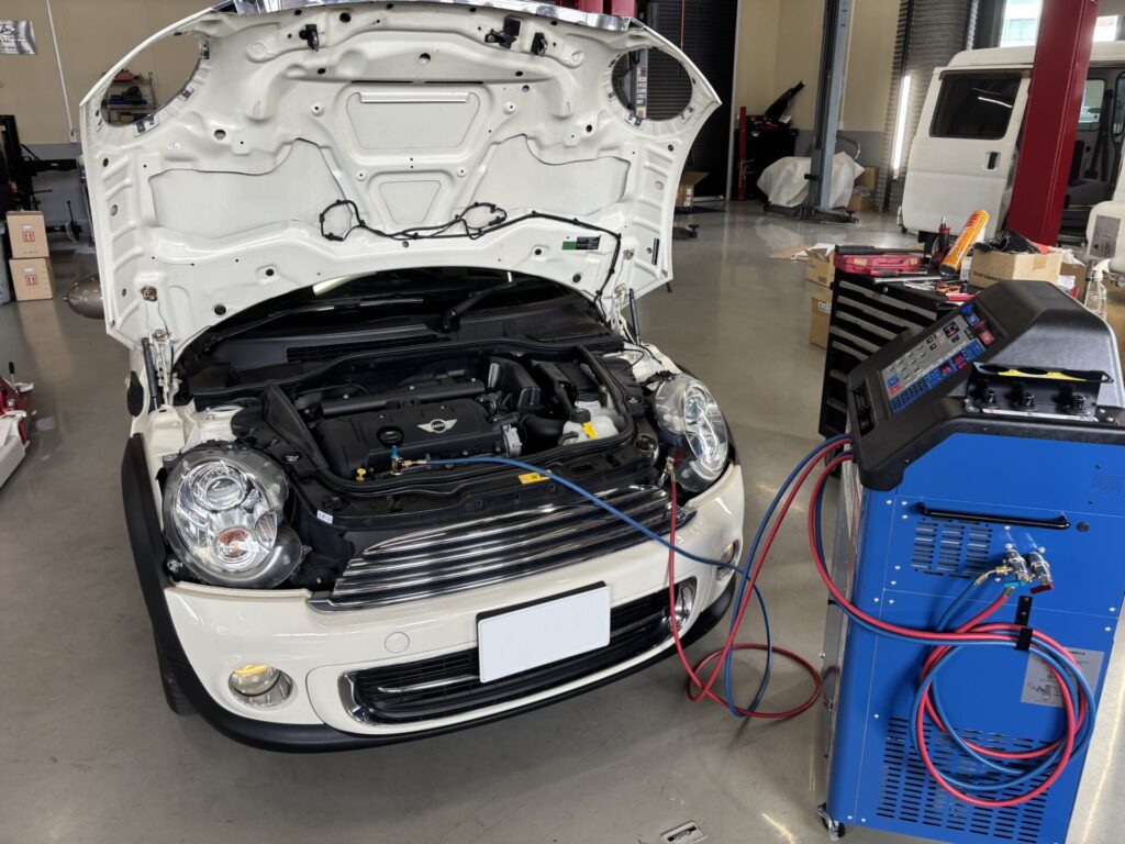 【整備】BMWMINI エアコンガス充填のご依頼をいただきました。